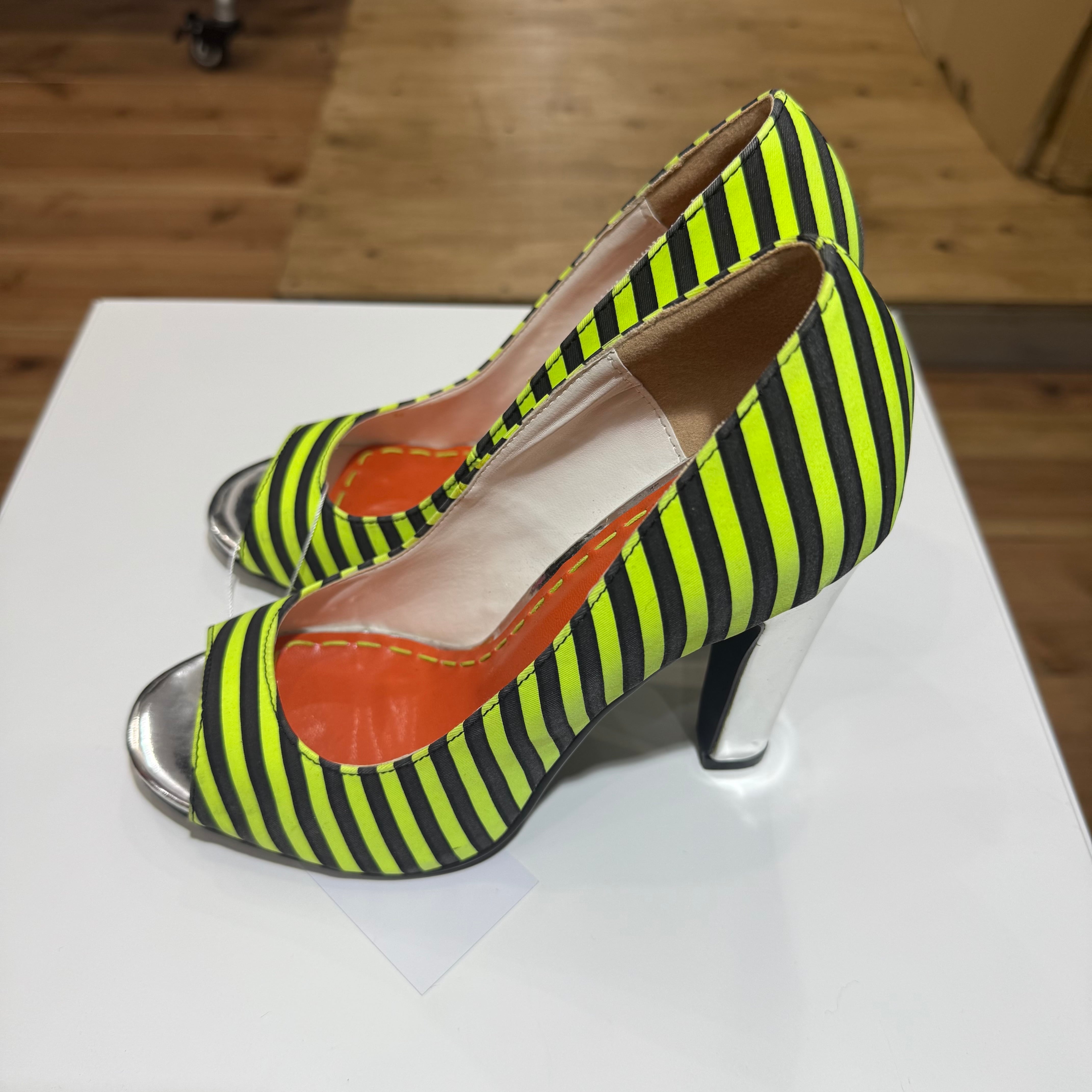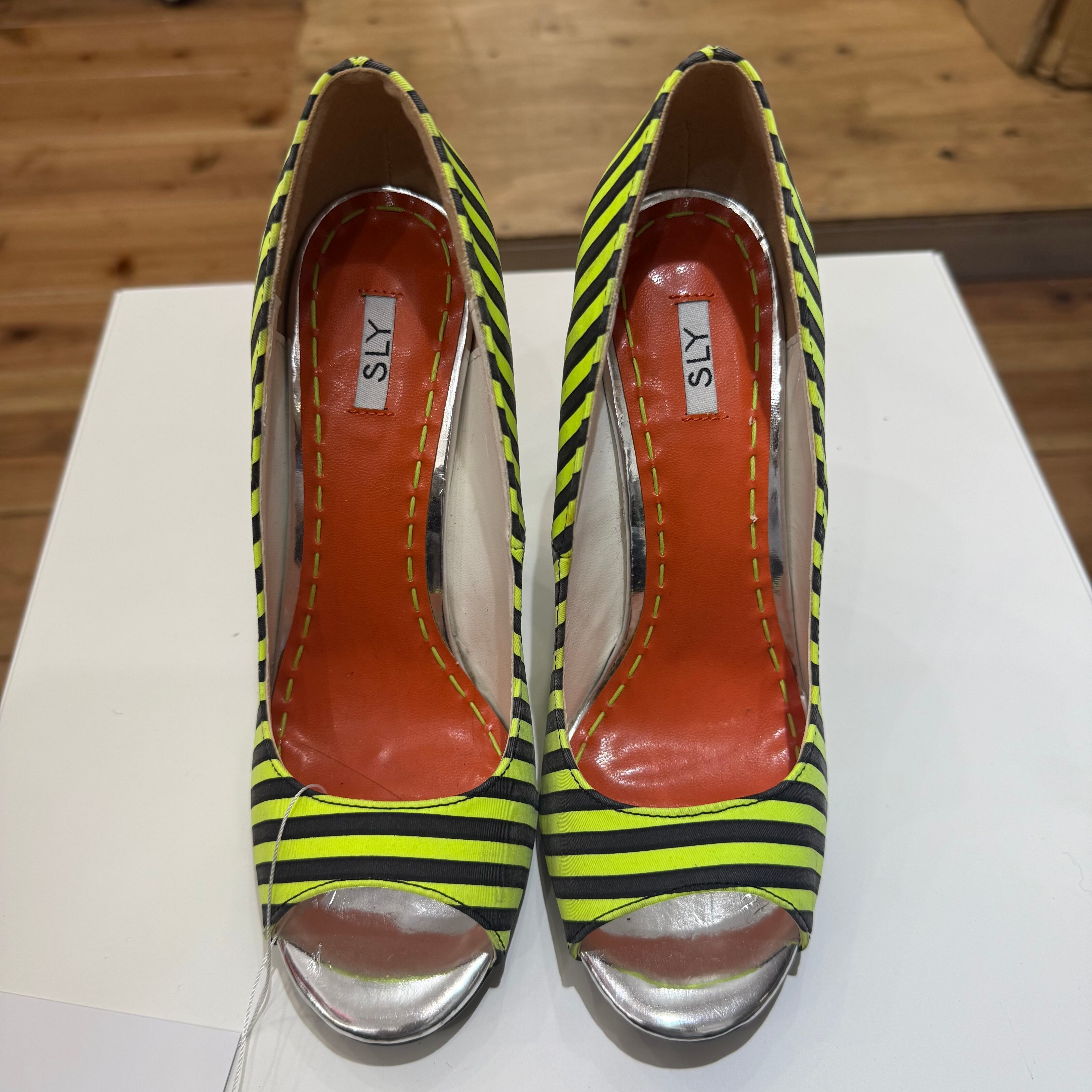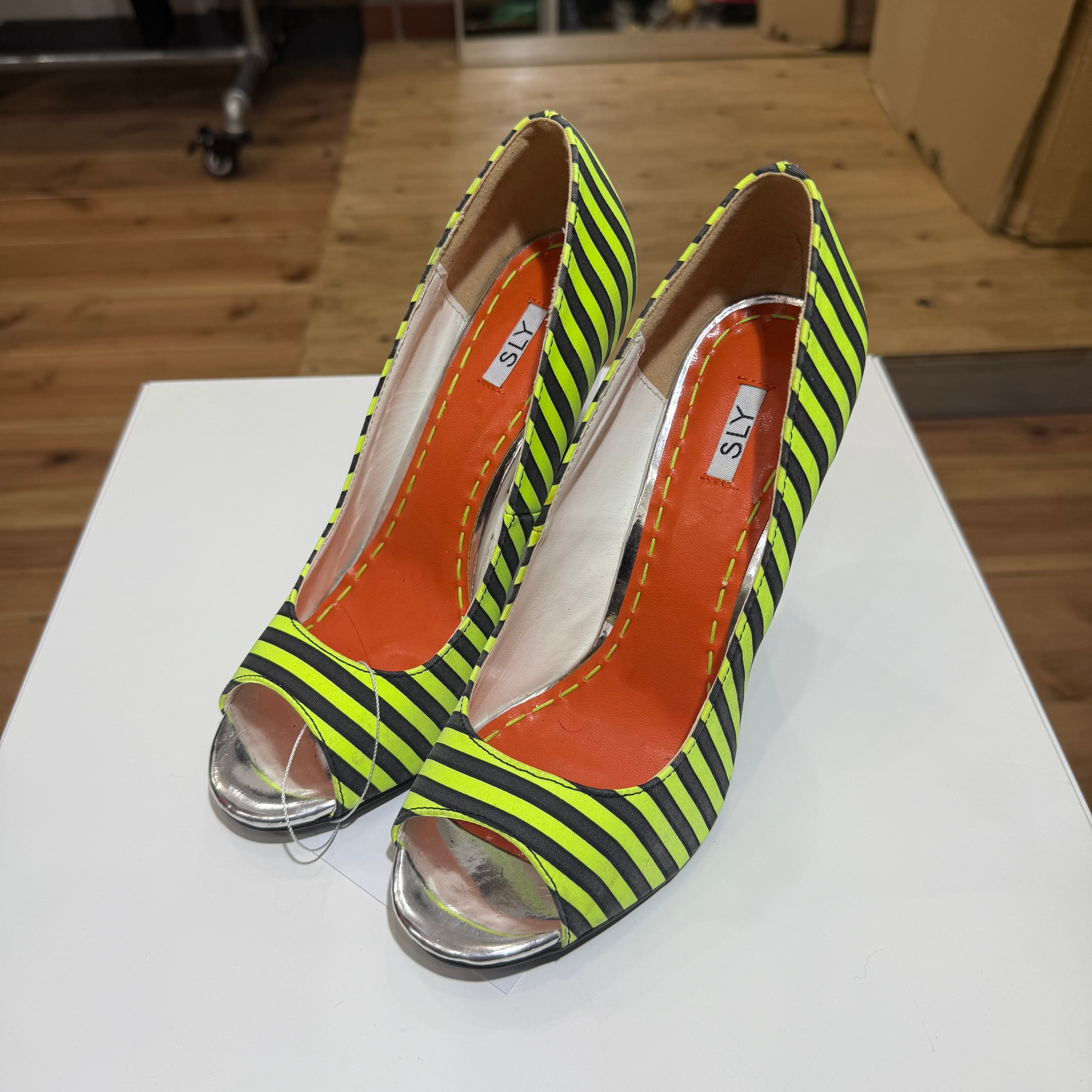 SLY Neon Stripe Peep Toe Heels